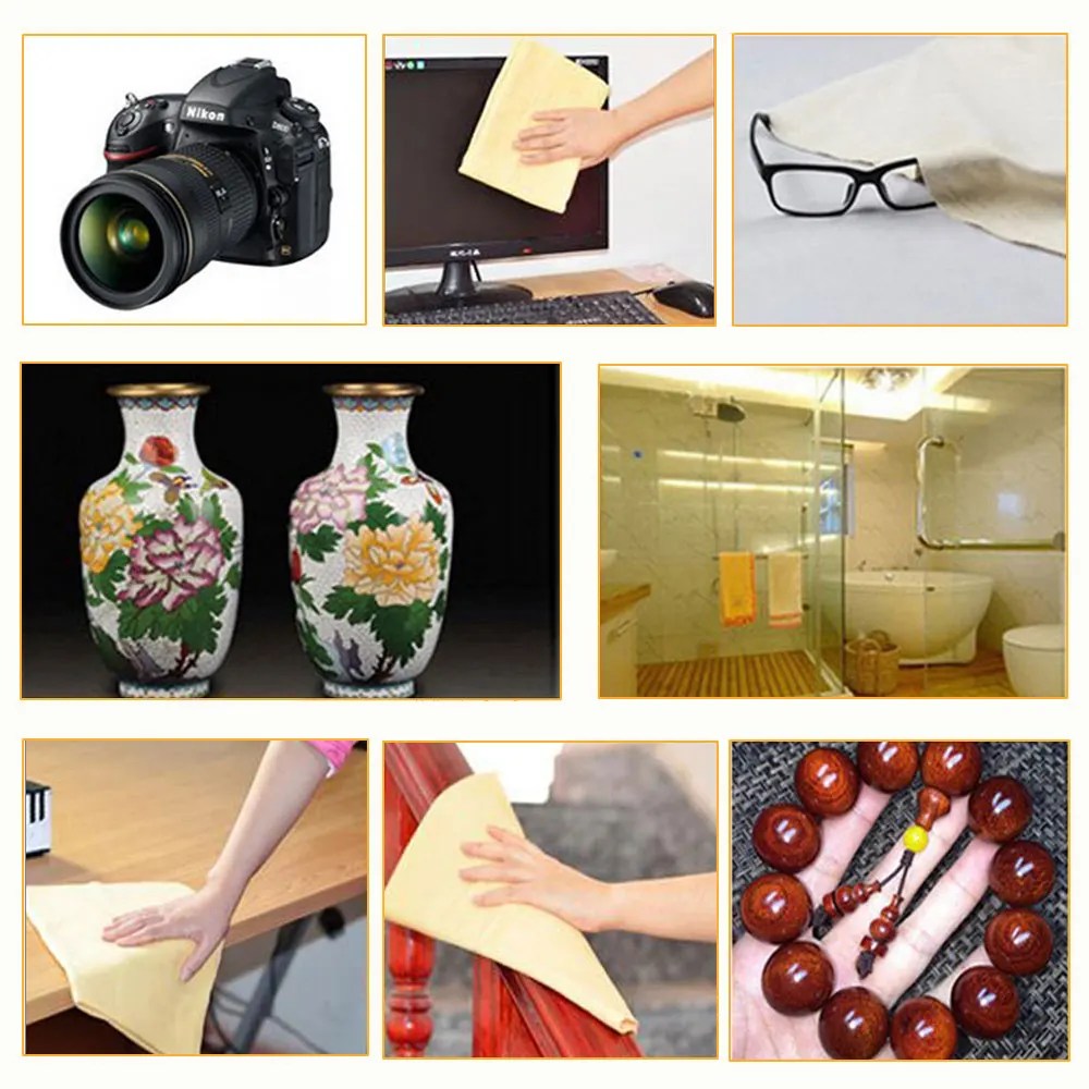 Cleaning: When using a chamois for cleaning, make sure the surface you are cleaning is free from any loose dirt or debris. Gently wipe the surface with the chamois, using a circular motion. The chamois will absorb the dirt and leave the surface clean.
